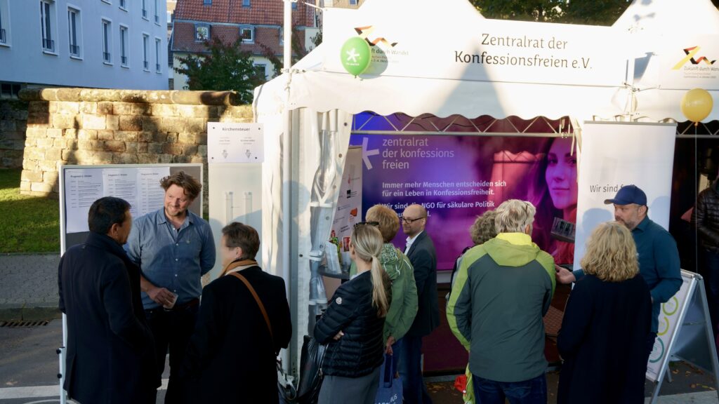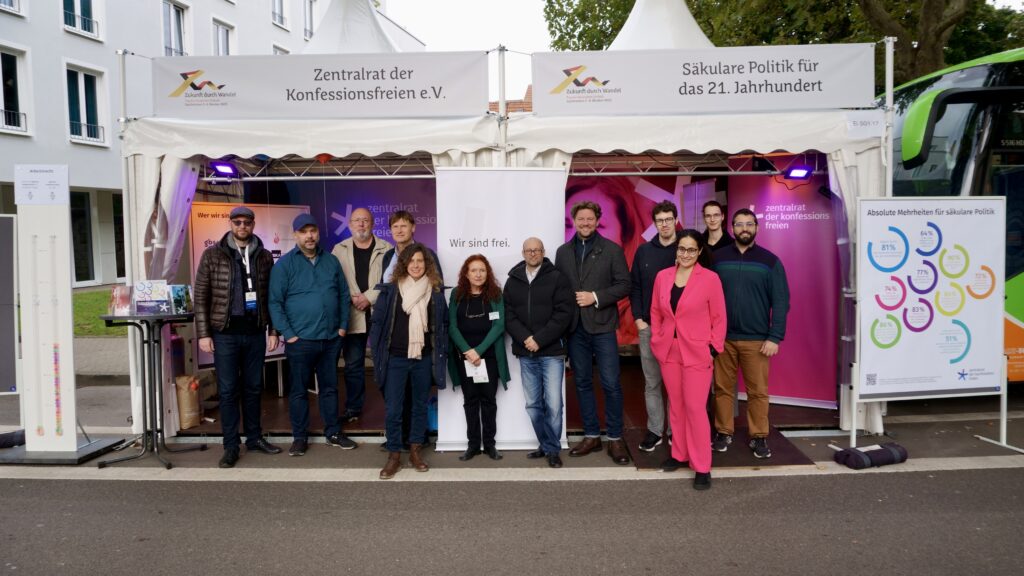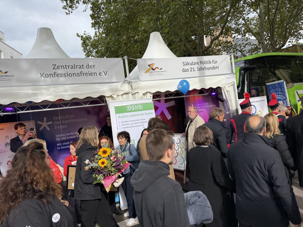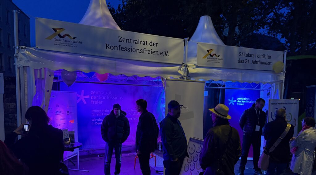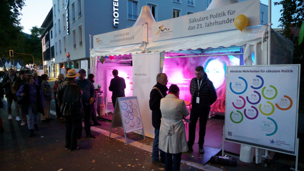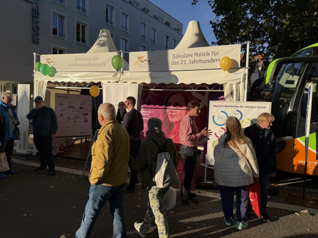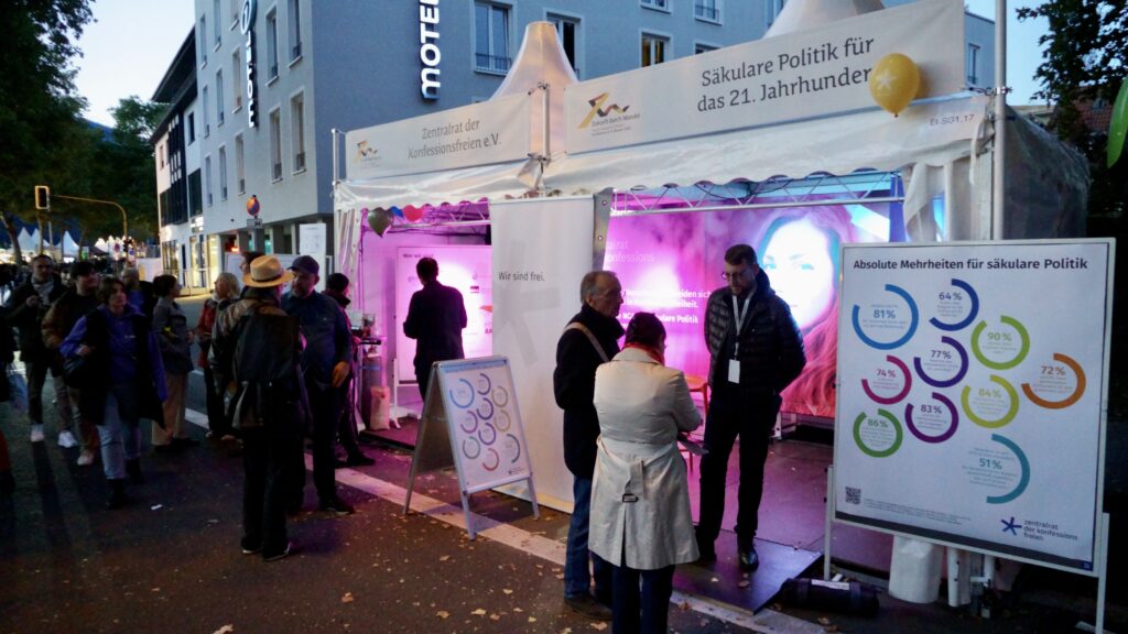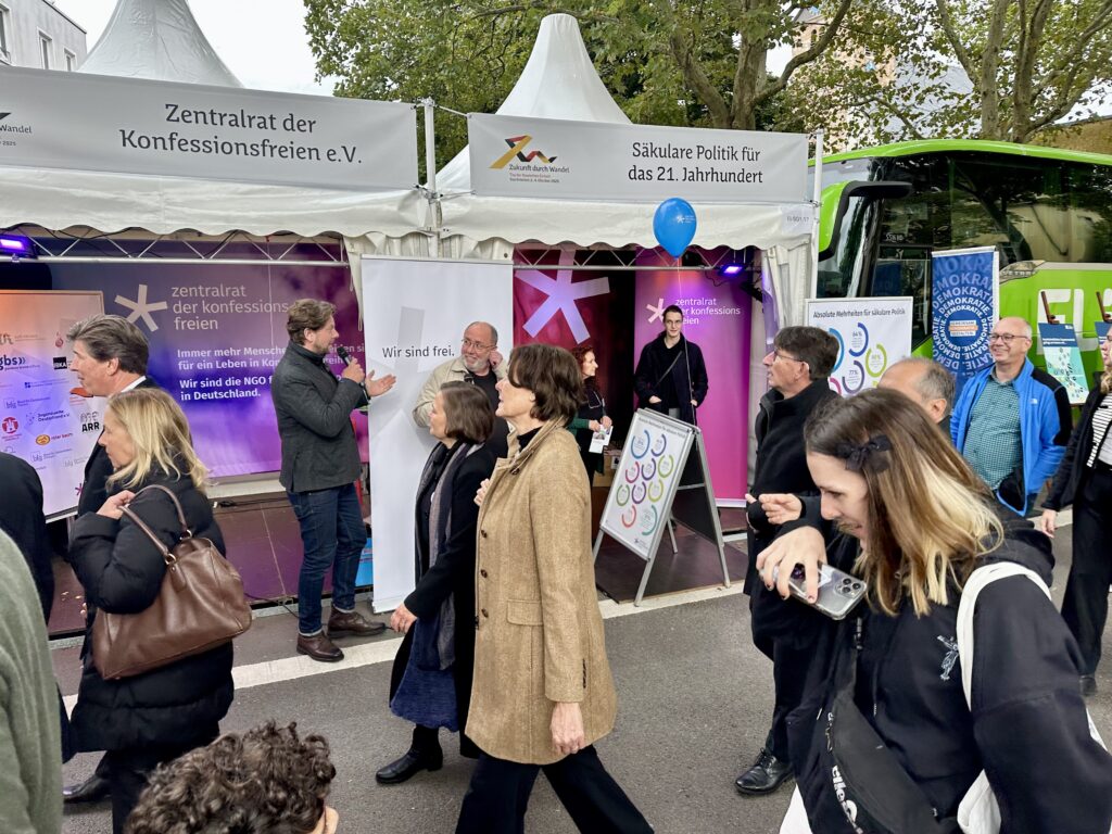 Unter dem Motto „Wandel der Weltanschauungen” ist der Zentralrat der Konfessionsfreien am Bürgerfest zum Tag der Deutschen Einheit 2025 in Saarbrücken aufgetreten. Nach einem vielseitigen Programm und zahlreichen Gesprächen am Infostand zieht der Vorsitzende Philipp Möller eine erfreuliche Bilanz.
