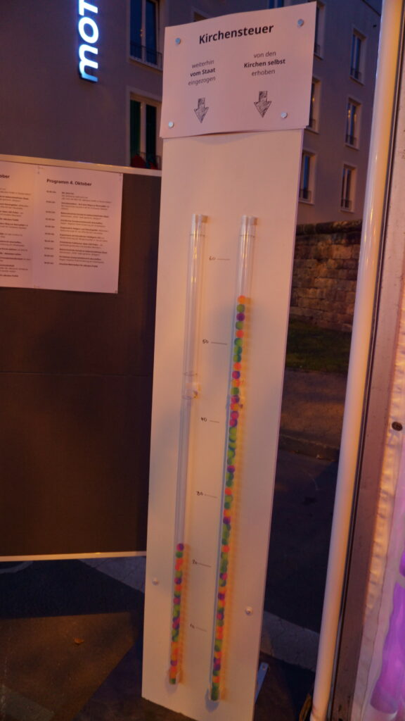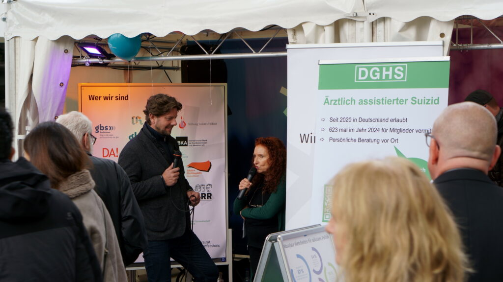 In einem Vortrag des „Bündnis altrechtliche Staatsleistungen ablösen” (BASTA) ging es um die rund 620 Millionen Euro, die die Bundesländer jährlich an die Kirchen überweisen – und um die Subvention der Kirchensteuer, die mit 4,6 Milliarden Euro pro Jahr fast das achtfache beträgt. In einem anderen Impulsbeitrag stellte die Deutsche Gesellschaft für humanes Sterben (DGHS) ihre Arbeit als Vermittlerin von Freitodbegleitungen vor.