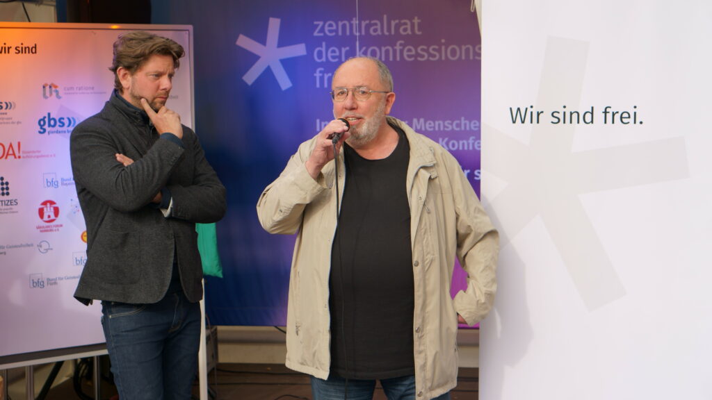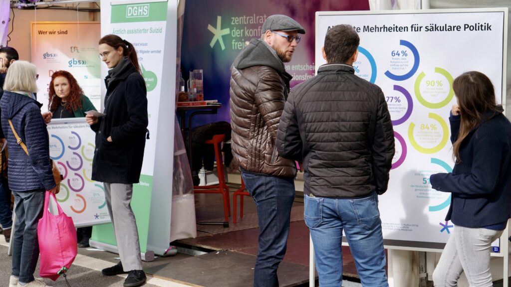 Mit einem vielseitigen Programm hat der Zentralrat seine Arbeit auf dem TDE25 vorgestellt. In Kurzvorträgen stellte Möller die Arbeit des Zentralrats am Infostand vor. Dabei ging es ebenso um die absoluten Mehrheiten für säkulare Politik wie um die Inhalte der Schriftenreihe Konfessionsfrei Kompakt, in denen konkrete säkulare Reformbedarfe verfasst sind: zur Kirchensteuer, dem religiösen Sonderarbeitsrecht, dem Religionsunterricht und zu säkularer Gesetzgebung.