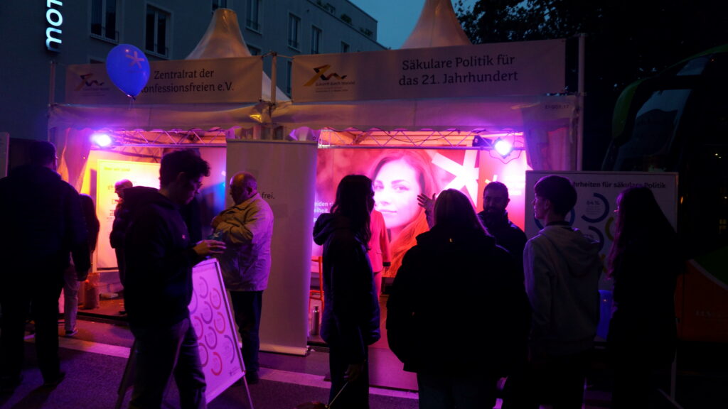 Schließlich beendete das Team vom Zentralrat seinen Auftritt auf dem Bürgerfest mit dem guten Gefühl, auch im Saarland eine weitestgehend säkular eingestellte Bevölkerung getroffen zu haben. „Die Botschaft an die Politik ist glasklar”, so Möller. „Es gibt in Deutschland absolute Mehrheiten für einen weltanschaulich neutralen Staat – Sonderrechte für Religionsgemeinschaften sind endgültig nicht mehr gewollt.”